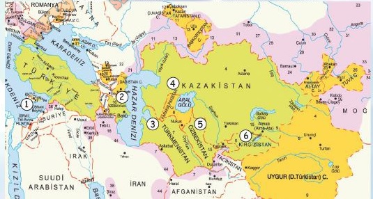 Aşağıdaki Türk Cumhuriyetlerine ait bayrakları kendi renklerine göre boyayınız. Hangi ülkeye ait olduğunu ve haritada kaç numara ile gösterildiğini yazınız.