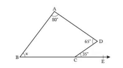 80º + 65º + 145º + x = 360º ise