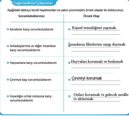 4. Sınıf İnsan Hakları, Yurttaşlık ve Demokrasi Ders Kitabı Sayfa 28,29 “İNSAN OLMANIN SORUMLULUĞU” Etkinlik Cevapları