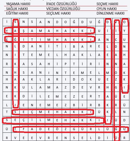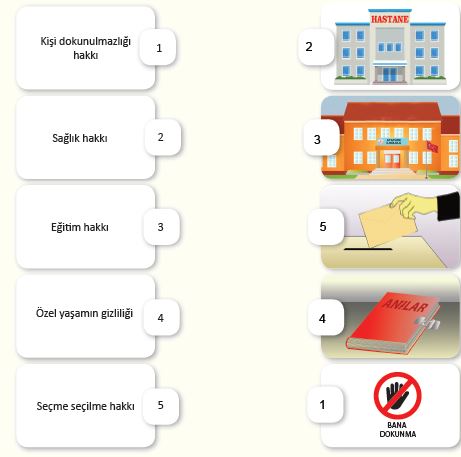 2. Aşağıda verilen temel haklarımız ile temel haklarımızı anlatan resimleri eşleştiriniz. Bu temel haklardan birini seçip önemini açıklayınız.
