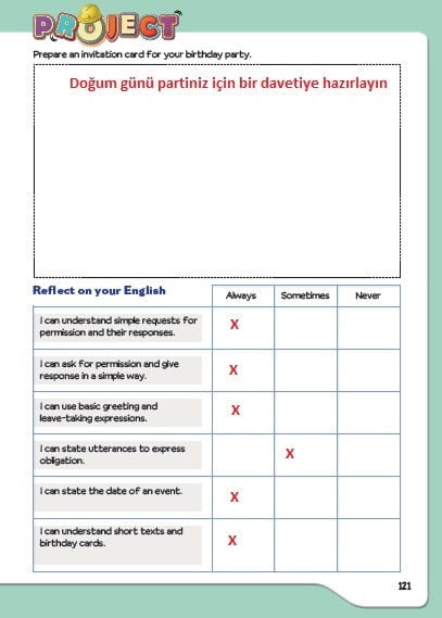 5.Sınıf İngilizce Ders Kitabı MEB Yayınları Sayfa 121 Cevapları