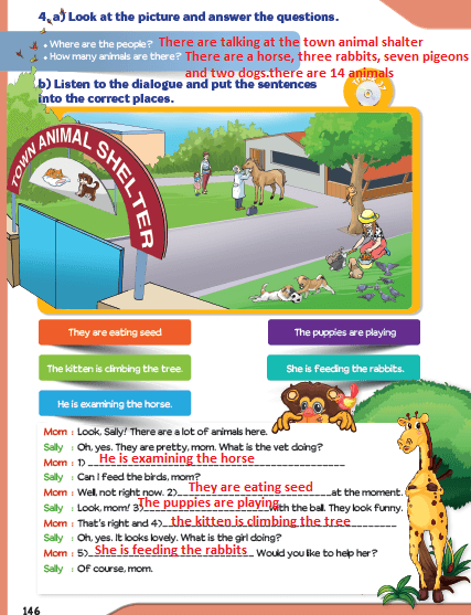 Look at the picture. What are the people and animals doing? (Resime bakın insanlar ve hayvanlar ne yaptıklarını söyleyin.)